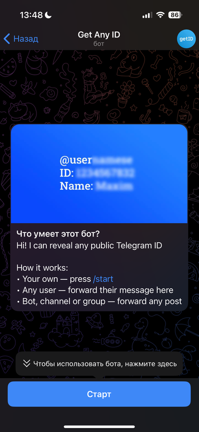 Как узнать свой ID в Telegram и не только: пользователя, чата, бота, группы или канала