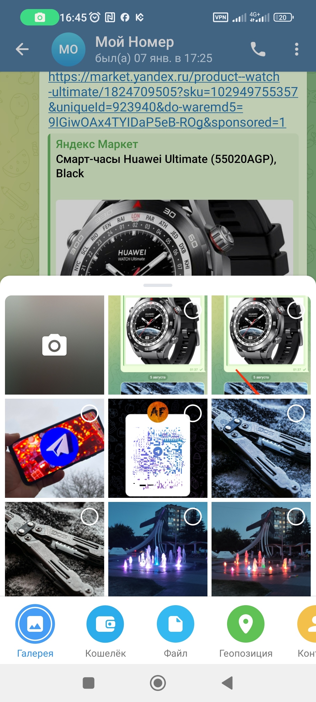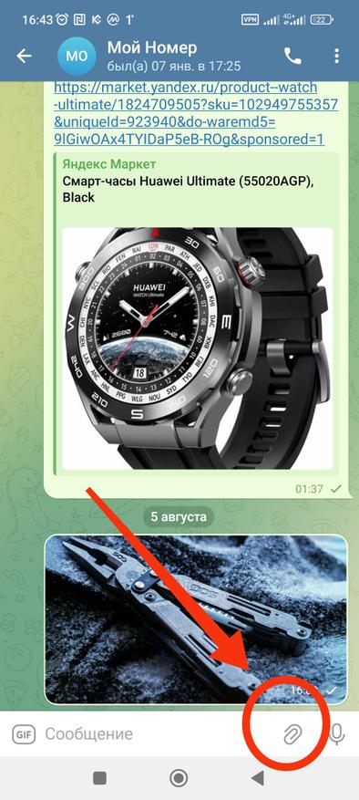 Редактирование изображений происходит непосредственно перед их отправкой, поэтому для начала выбираем чат или канал, в который хотим отправить изображение, и нажимаем на привычную многим скрепку, после чего выбираем нужное фото или изображение из галереи. При необходимости можно сделать новое фото.