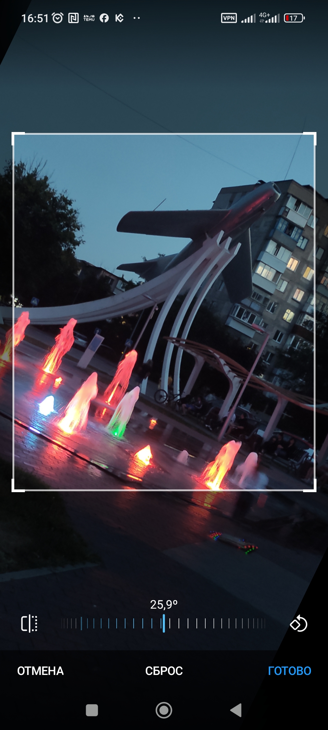 Первая иконка слева направо отвечает за возможность обрезать фото, и поворота на заданный или фиксированный угол. А также за возможность сделать изображение в зеркальном виде.