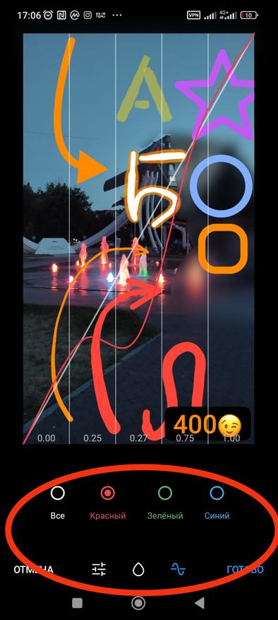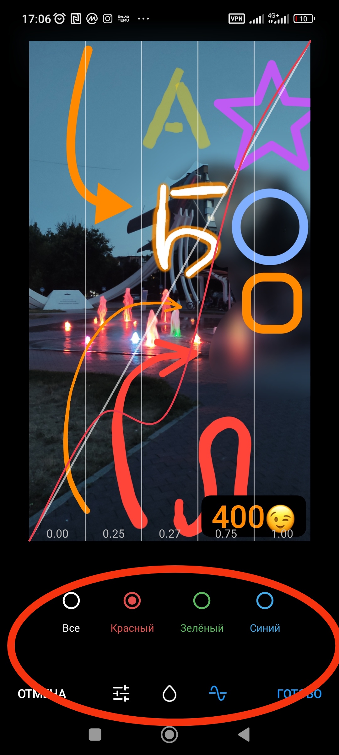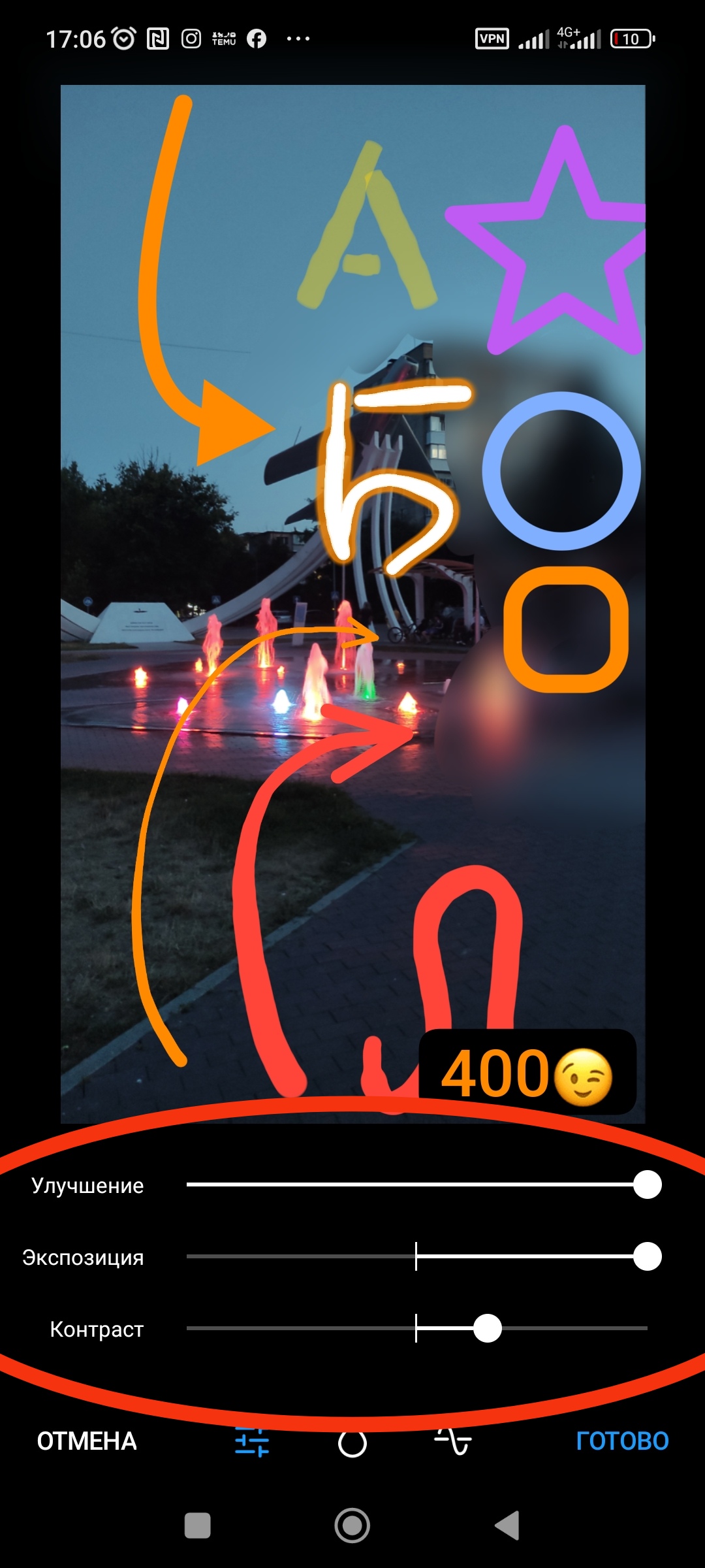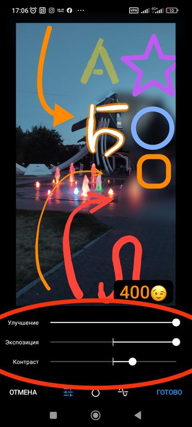 И последняя из трёх базовых иконок отвечает за цветокоррекцию, здесь можно поиграться с насыщенностью, контрастом, балансом цветов и так далее. В общем, вы просто и быстро можете улучшить любое ваше фото, или другое изображение, и отравить его уже в более привлекательном цвете.