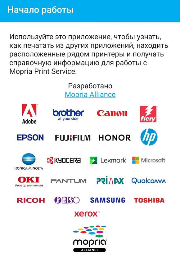 - Принтер или МФУ, который поддерживает единую технологию. Если хотите, можете сначала проверить на сайте Mopria, там есть все модели и бренды, которые поддерживает приложение.