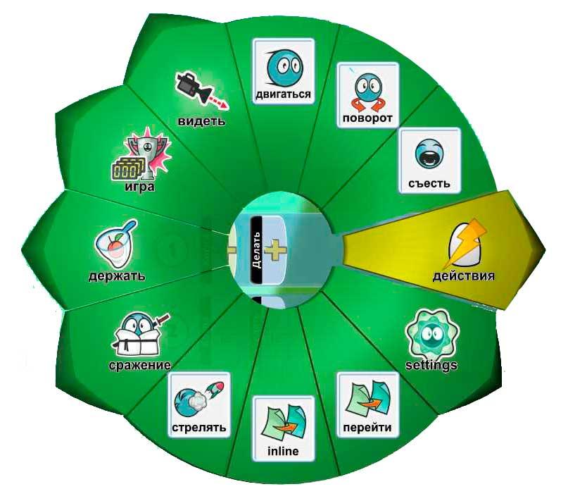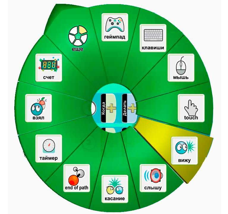 Программы составляются из готовых блоков, писать код не нужно. Игровые персонажи и объекты выбираются с помощью понятных меню с картинками и текстом. Даже если ребенок не умеет читать, он быстро осваивает основные команды по картинкам.