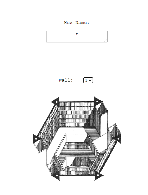 Полное построение исходной архитектуры невозможно, потому что сам Борхес дал описание бесконечной библиотеки, поэтому на сайте мы получаем доступ к шестиугольникам по их номерам и не можем просто «пройти по коридорам и лестницам».