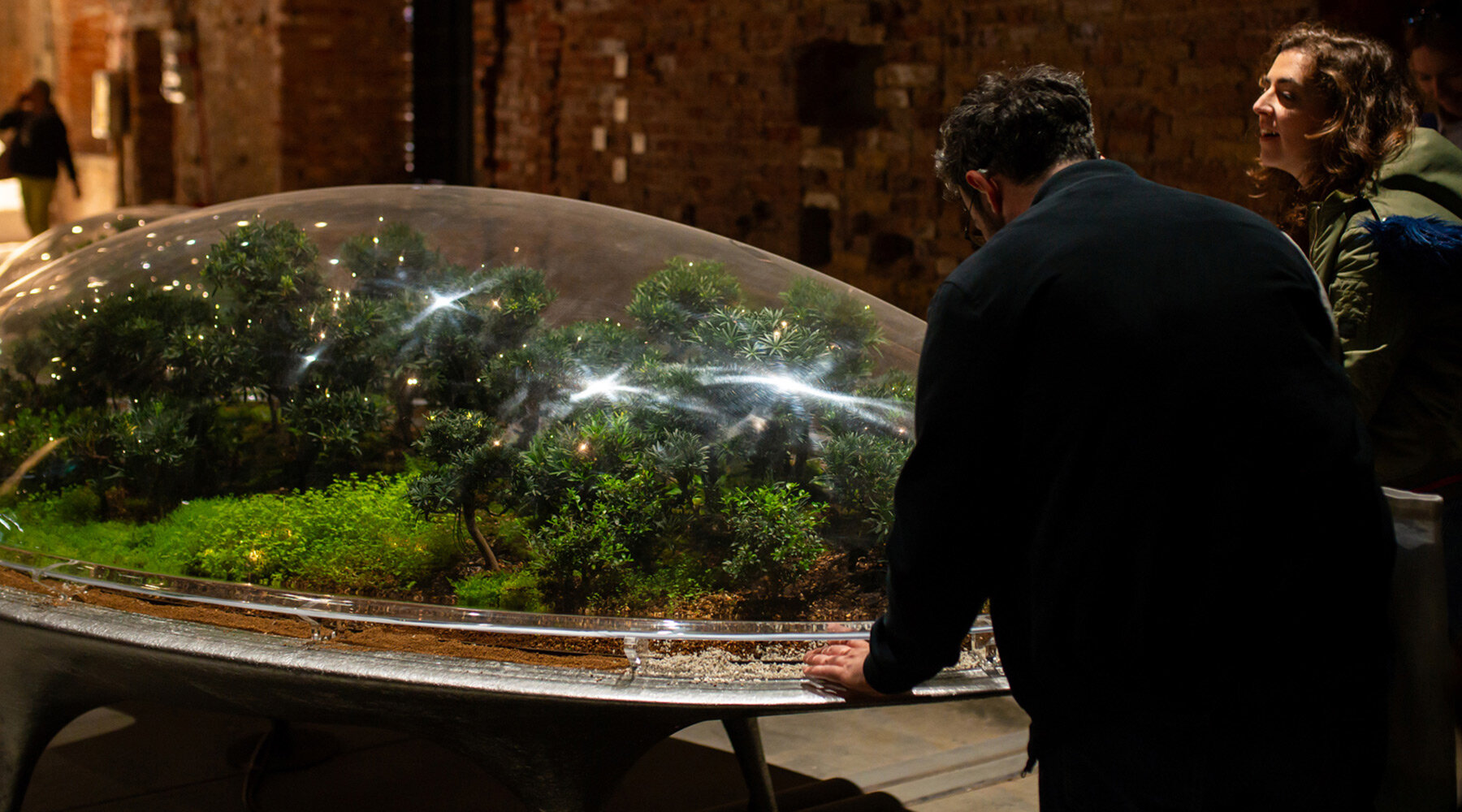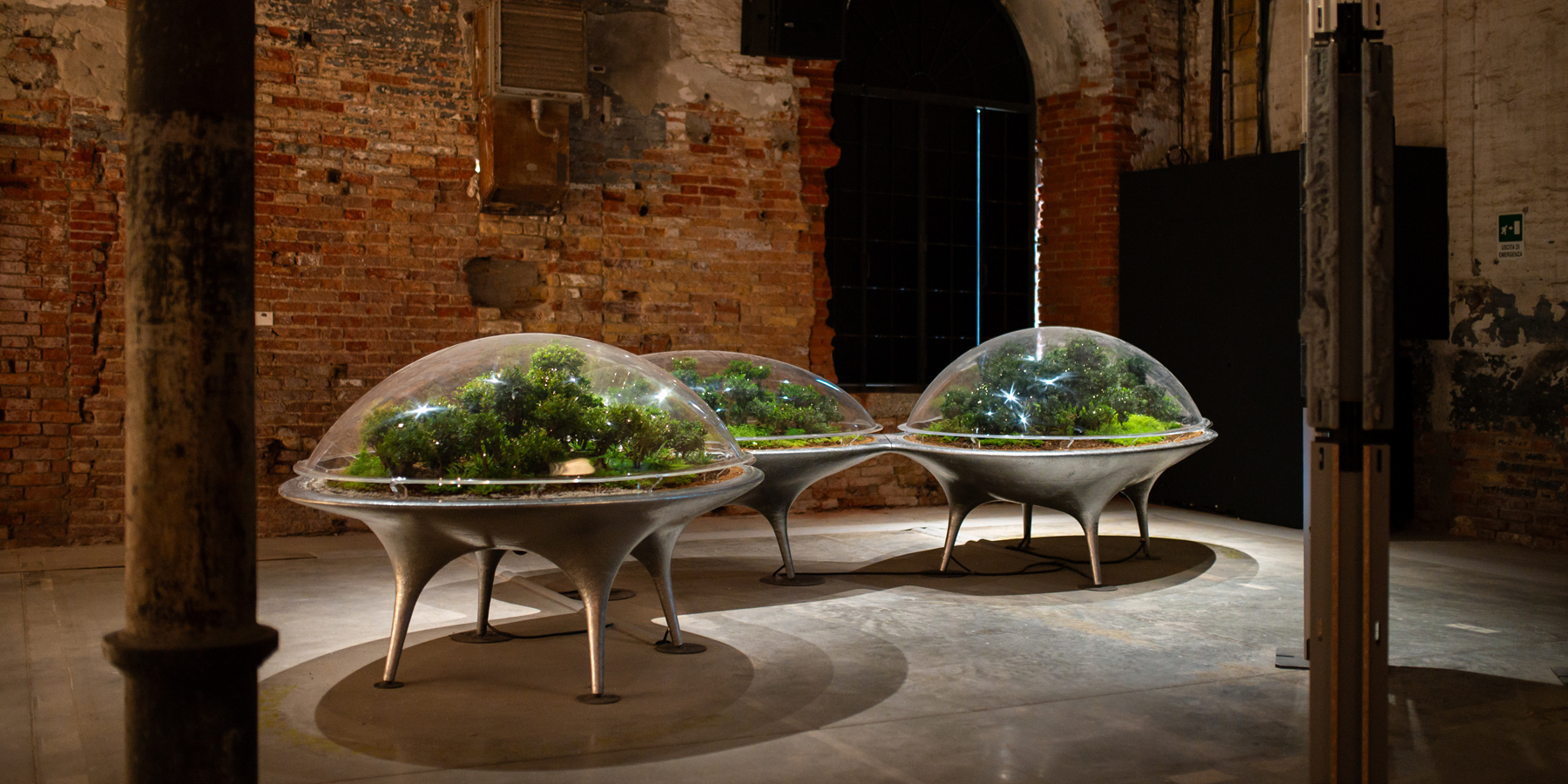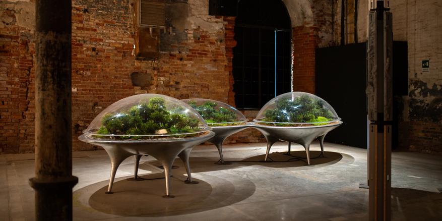 Микролеса, размещенные под куполами, представляют собой саморегулирующиеся экосистемы, которые меняются в зависимости от сезона и взаимодействия с посетителями. Футуристический дизайн инсталляции контрастирует с историческим интерьером Corderie dell'Arsenale, создавая диалог между прошлым и будущим.