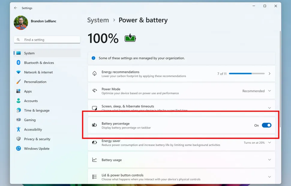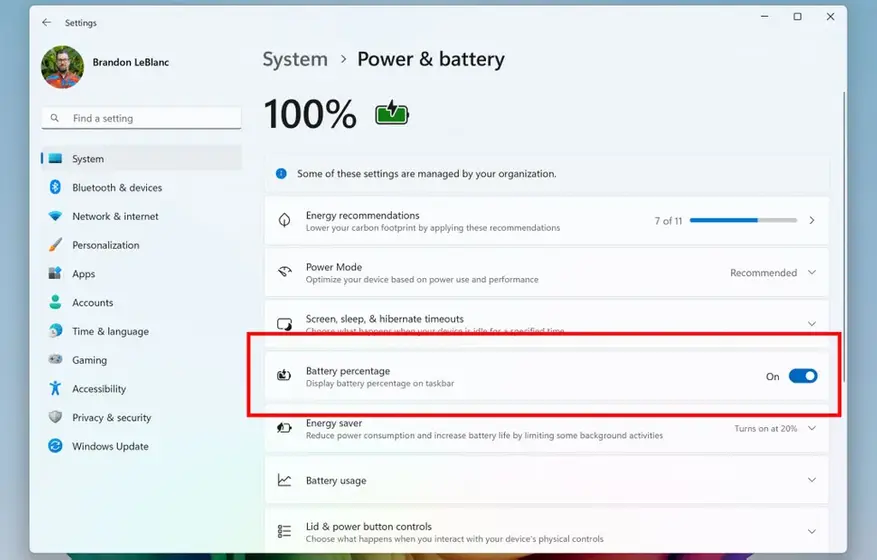 Microsoft представила улучшенные значки батареи в Windows 11