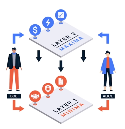 Уровень «максима» обеспечивает осуществление быстрых транзакций, DAPPs со средой для разработки, смарт-контракты и другие фишки, которые все привыкли видеть в современных блокчейнах. Уровень «минима» имеет высокую децентрализацию и безопасность, за счёт этого медленный и практически не подвержен масштабируемости. Если объяснять блокчейн простыми словами, то уровень «максима» представляет собой корку книги, а «минима» страницы, которые в ней закрепляются.