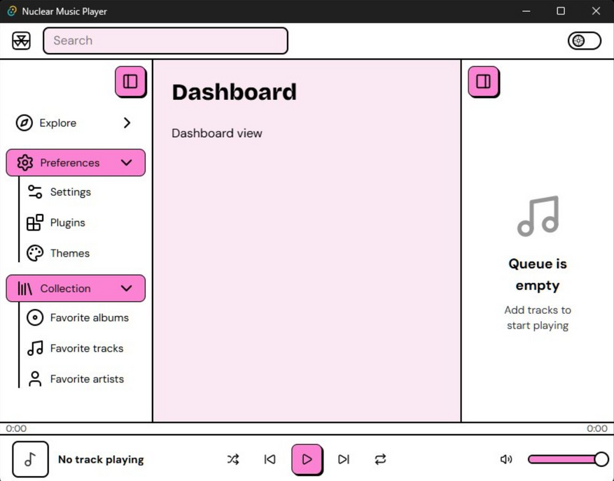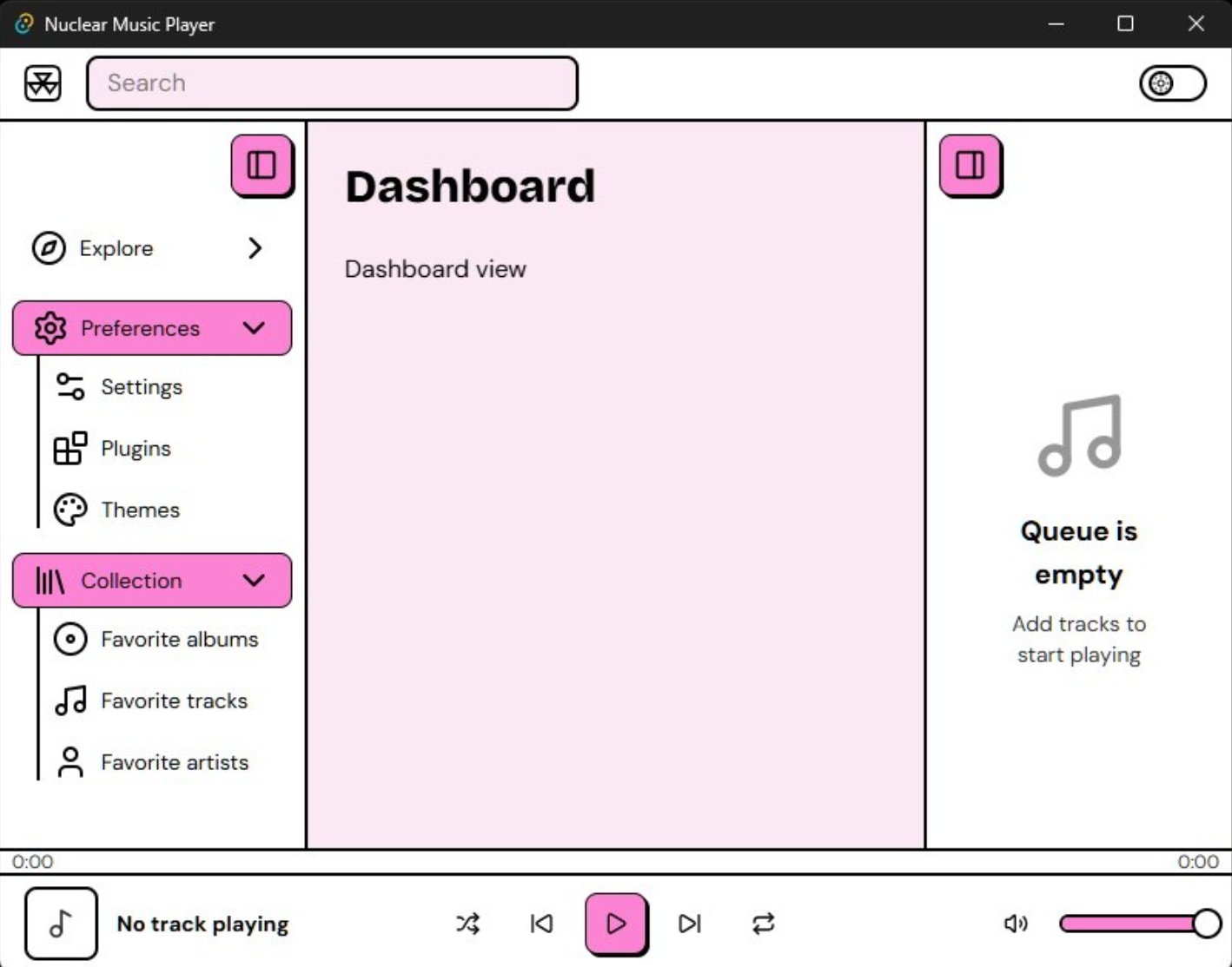 Nuclear представляет собой кроссплатформенный музыкальный плеер, доступный для Windows, macOS и Linux. Его ключевая особенность заключается в сочетании локального воспроизведения и встроенного поиска музыки в интернете. Приложение умеет подключаться к открытым музыкальным платформам, включая Soundcloud и Bandcamp, после чего пользователь может находить композиции, добавлять их в очередь и сохранять для последующего прослушивания. В актуальной версии также реализована система плагинов, позволяющая расширять базовый функционал. С помощью дополнений можно отображать тексты песен, подключать новые источники потокового аудио и использовать сторонние расширения, разработанные сообществом.