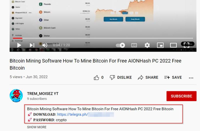 На хостинге было как минимум 80 различных видео, где мошенники предлагали загрузить бесплатное ПО, чтобы майнить биткоин. Желание легко получить криптовалюту сыграло злую шутку с жертвами.