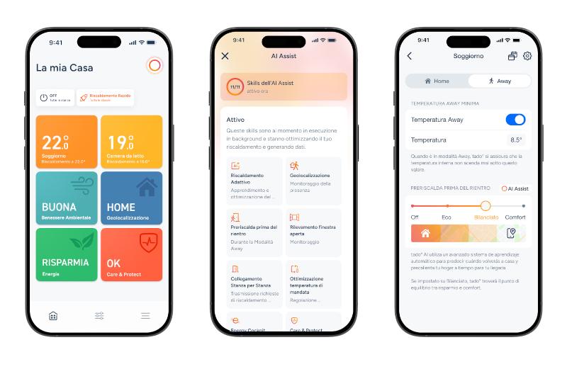 AI Assist включает четыре ключевые функции, доступные для линейки устройств tado° X: адаптивное отопление, интеллектуальный предварительный обогрев, Energy IQ и режим отпуска. Адаптивное отопление анализирует тепловые характеристики помещений и автоматически регулирует работу термостатических клапанов. Интеллектуальный предварительный обогрев прогнозирует возвращение жителей домой и заранее активирует систему отопления. Energy IQ предоставляет детальную аналитику энергопотребления через интерактивные панели. Режим отпуска поддерживает минимальные температуры во время длительного отсутствия жильцов.