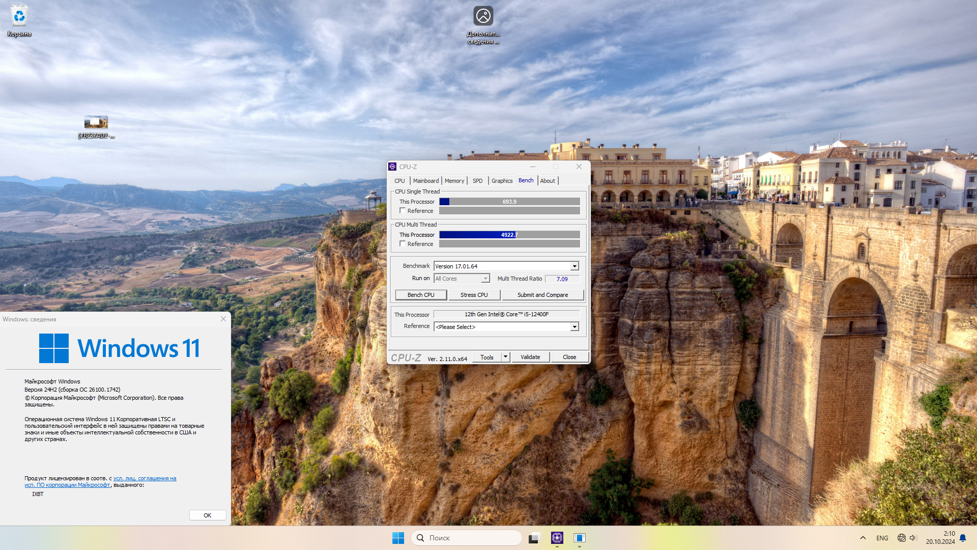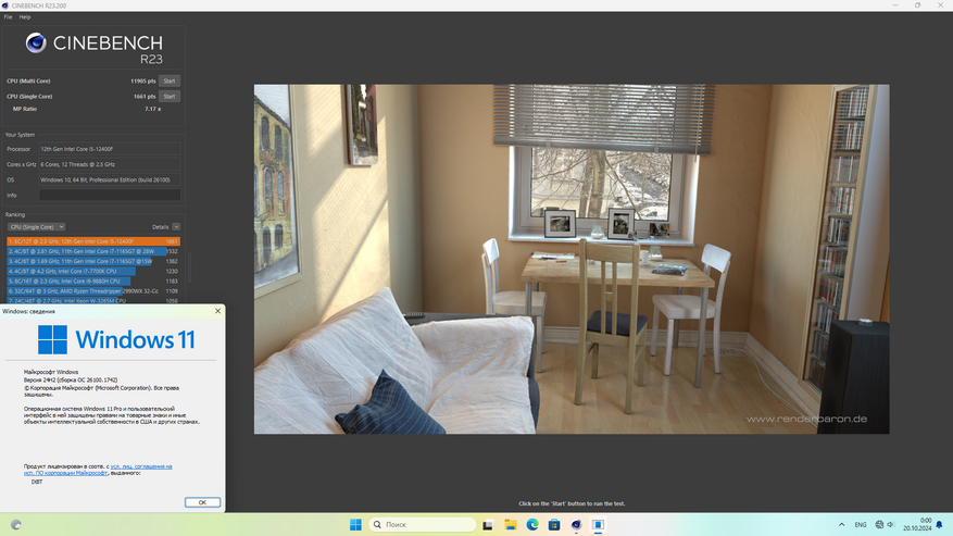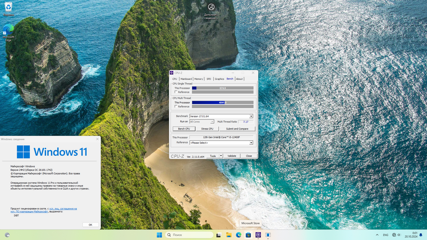 Исходя из предыдущего сравнения, логично будет предположить, что Windows 11 LTSC должна меньше потреблять ресурсов CPU. Проверим это на практике с помощью Cinebench R23 и CPU-Z 2.11.