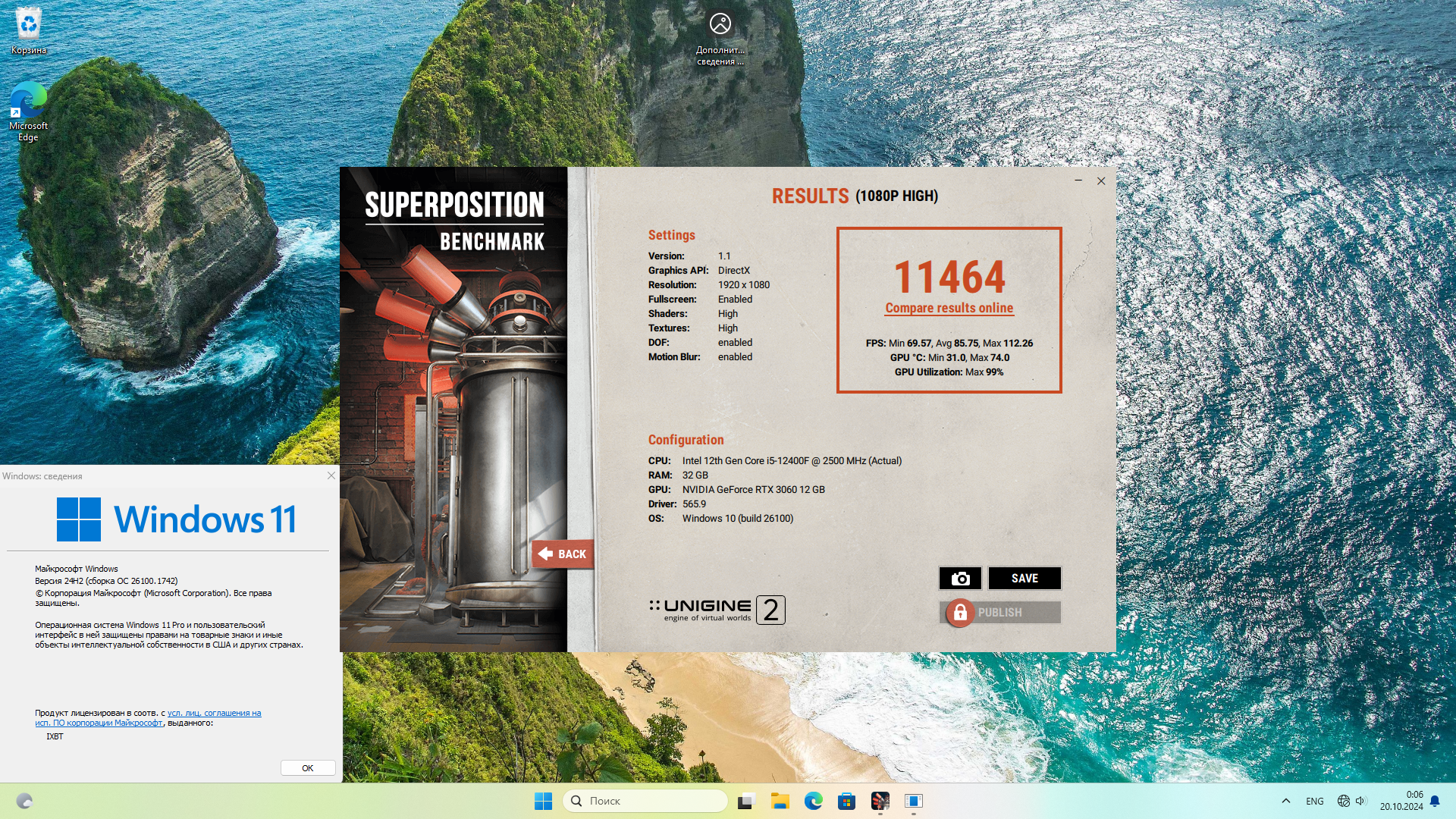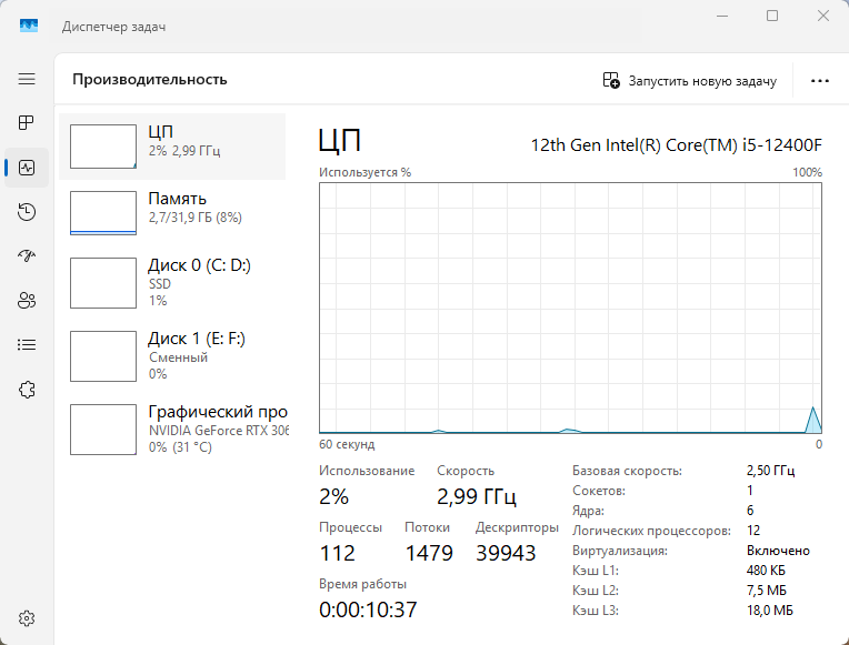 - Видеокарта: Nvidia GeForce RTX 3060 12 Гб