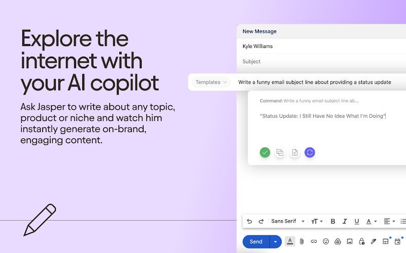 Хороший помощник для тех, кто работает с социальным контентом или часто отвечает на электронные письма. Jasper — это инструмент для копирайтинга, позволяющий быстро подготовить контент или сообщение другому пользователю. Скорость создания текста, в сравнении с ручным набором, отличается почти в 10 раз. Более того, сгенерированный ИИ контент является оригинальным и оптимизированным для поиска.