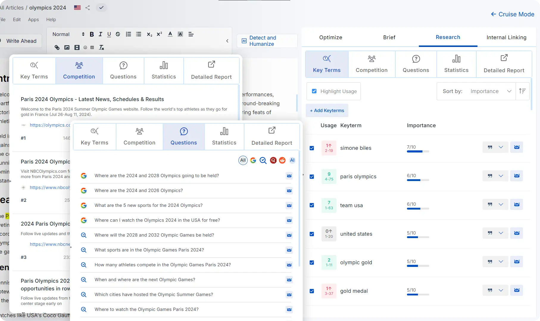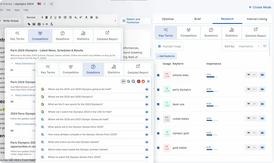 Всесторонняя работа с SEO. С помощью плагина можно получить точечный контент-план в один клик, содержащий ключевые слова для интересующей ниши. Также ИИ способен предоставить аналитические данные на уровне домена. При разработке плана учитывают конкурентные страницы, статистика просмотра по конкретным запросам и многие другие факторы. Благодаря этому пользователь получает готовое решение, которое остается только реализовать.