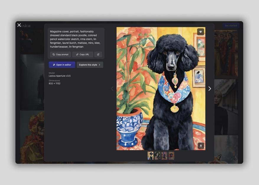 Лексика — это онлайн-сервис, оснащенный искусственным интеллектом, который не только создает изображения, но также дает доступ к огромной библиотеке, содержащей более 5 миллионов работ от других пользователей. При выборе любой картинки из этой коллекции вы получаете подсказку о том, как она была сгенерирована. Этот сервис является не только источником вдохновения и творчества, благодаря возможностям искусственного интеллекта, но и удобным онлайн-инструментом для быстрого создания изображений для различных нужд, включая использование Stable Diffusion. Бесплатный режим позволяет создавать до 100 изображений в месяц. Лексика доступна в России без необходимости использования VPN.