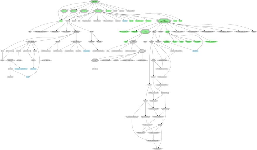 Сказать честно некоторые элементы данных схем мне не очень нравятся. В частности, согласно документации движка Source, ответвление студии Respawn выросло из ветки движка Portal2, да и CoD 1 основывалась не на официальном id3, а на модифицированном движке который создавался во время разработки Medal of Honor: Allied Assault, которую они делили во времена студии 2015. Но не обращая внимания на это, можно заметить что тут присутствует множество игр от различных студий, и не всегда понятно где же тут игровые движки, и для чуть большей наглядности я собрал вот такую схему, ориентируясь не только на схемы выше, но и на другие источники: