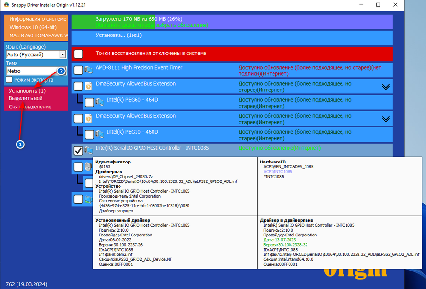 П. С. Вы можете вручную выбрать установку только нужного вам драйвера, отметив его галкой в интерфейсе ПО. Для просмотра версии установленного и предлагаемого драйвера используйте клавишу CTRL.