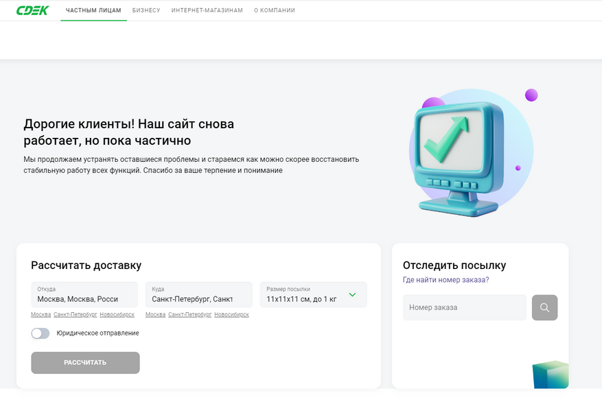 Сайт компании СДЭК возобновил свою работу, но это не принесло облегчения