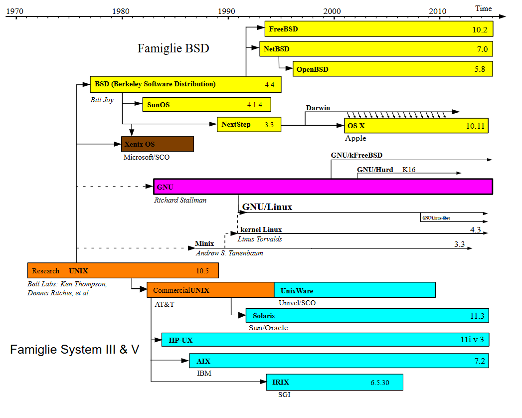 Дальнейшее развитие привело к появлению ответвлений — как коммерческих, так и открытых. Самыми известными свободными наследниками UNIX стали BSD-проекты, основанные на исходных кодах Unix 4.3BSD, распространявшихся в университетской среде.