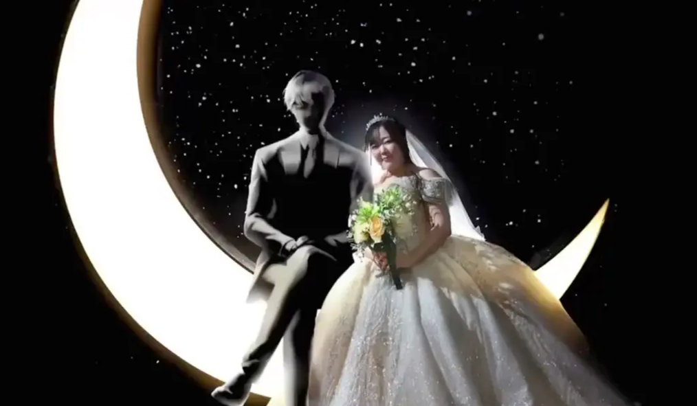 Церемония, организованная специализированной японской компанией, прошла в гибридном формате. Невеста, одетая в традиционное свадебное платье, использовала очки дополненной реальности (AR), чтобы видеть спроецированное изображение своего цифрового избранника рядом с собой во время события. В ходе мероприятия пара обменялась кольцами. Несмотря на присутствие на церемонии родителей невесты, которые приняли её выбор, данный союз не имеет юридической силы на территории Японии.