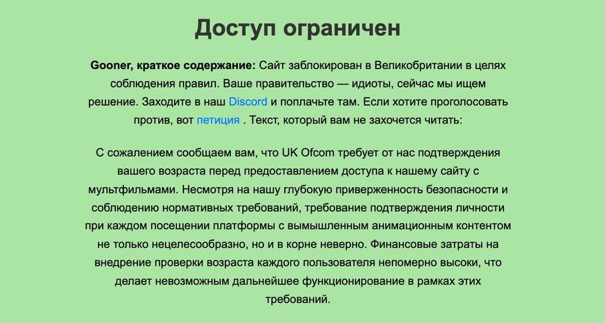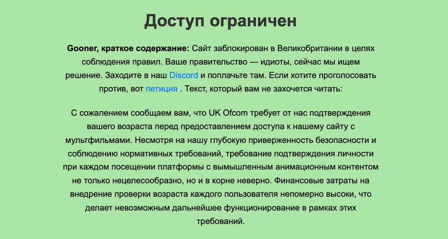 «Ваше правительство – идиоты»: в Великобритании заблокировали Rule34 из-за отказа подключить верификацию по возрасту