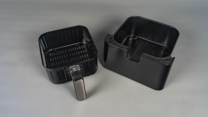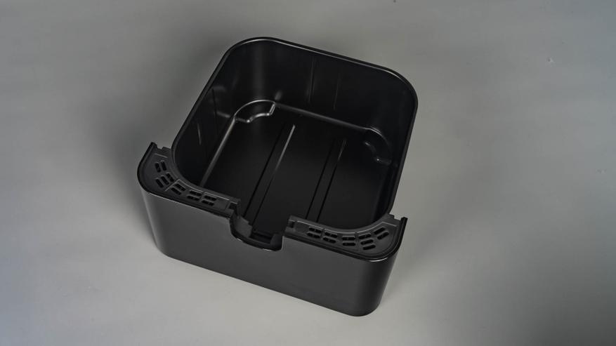 Верхняя часть аэрогриля также выполнена из глянцевого черного пластика.