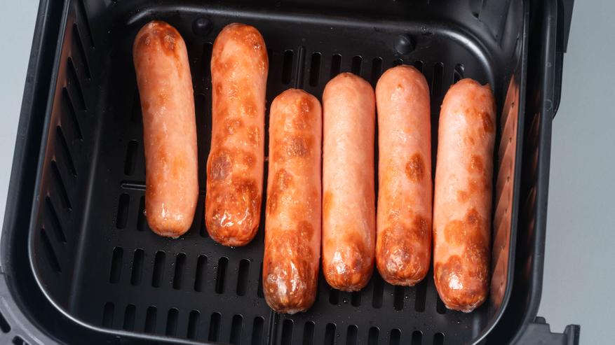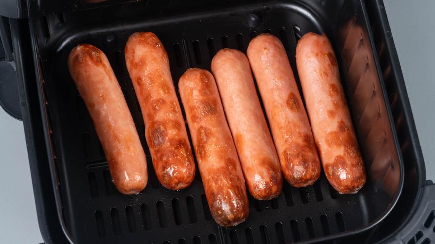 Приготовление сосисок в аэрогриле — быстрый, удобный и не требующий масла способ получить аппетитные, равномерно подрумяненные сосиски с хрустящей оболочкой. Для достижения лучшего результата выставите температуру в аэрогриле до 180-200°C в зависимости от толщины и длины ваших сосисок и приготавливайте их в течение 5-7 минут.