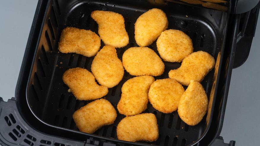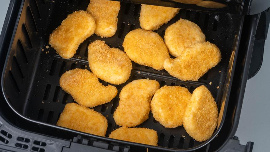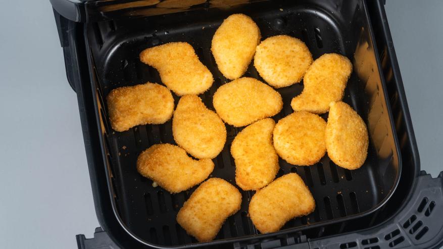 Приготовление наггетсов в аэрогриле позволяет получить румяную хрустящую поверхность без необходимости добавления масла. Предварительная разморозка не требуется — замороженные наггетсы можно сразу помещать в аэрогриль.