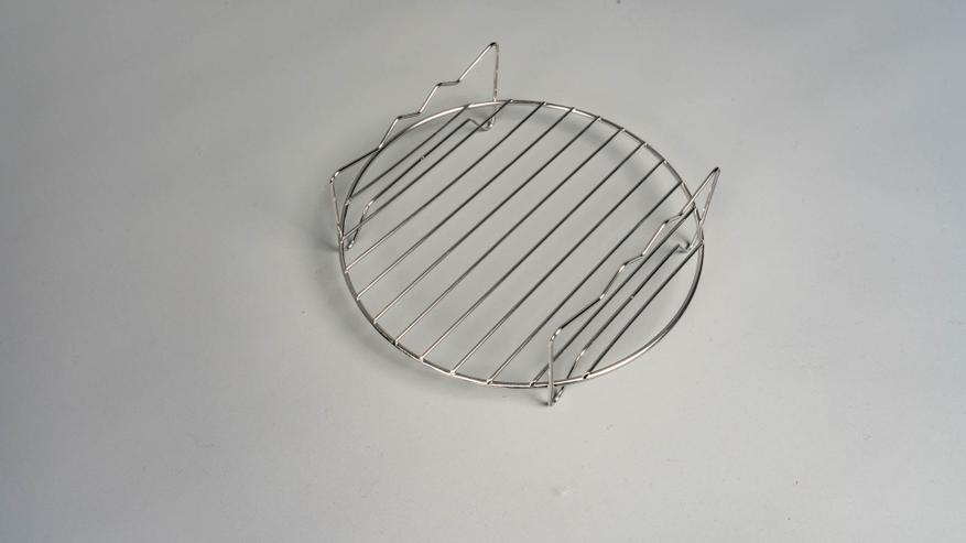 Корпус аэрогриля установлен на четыре пластиковые ножки, которые слегка приподнимают его над столешницей, создавая необходимый воздушный зазор.