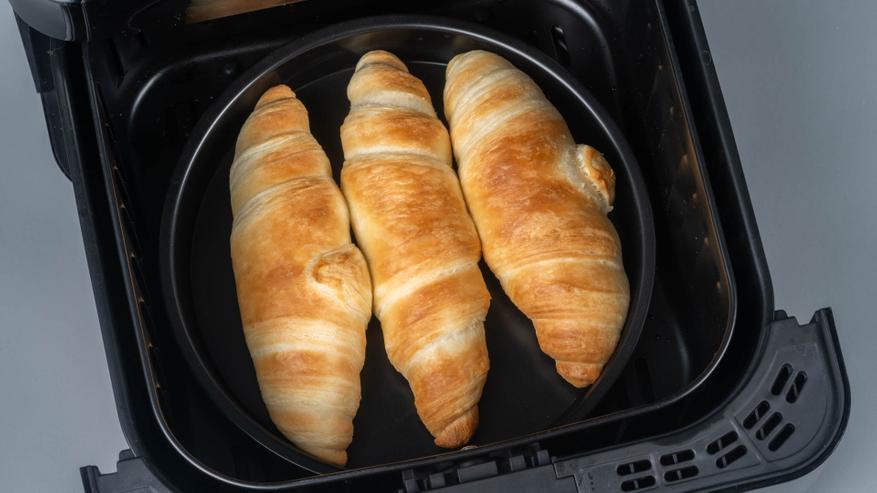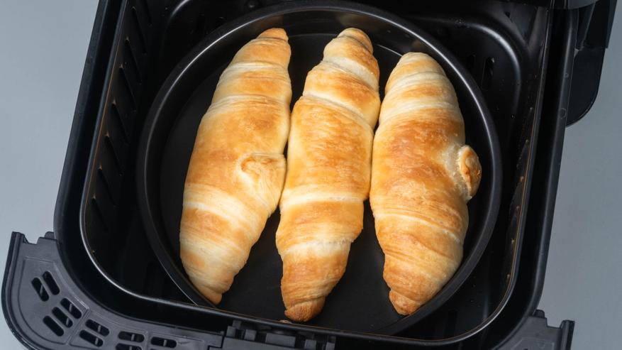 Выпечка круассанов в аэрогриле требует внимания к деталям, но результат однозначно того стоит. Перед выпеканием я предварительно немного прогреваю аэрогриль на температуре 180 °C, буквально 2 минутки. Сами круассаны я выкладываю на форму для запекания и выпекаю при 200 °C 20 минут. Готовый результат на фотографии ниже.