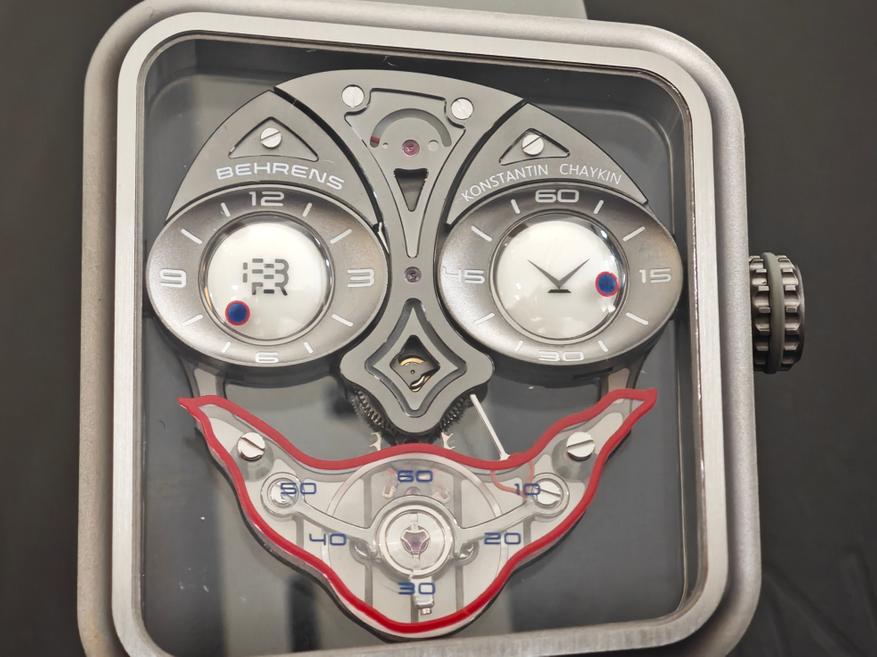 Данная версия часов, как и прежде, получила наиболее узнаваемые черты обоих производителей: от Чайкина здесь узнаваемый антропоморфный циферблат, который заключен в узнаваемую асимметрию BEHRENS. В основе корпуса — нашумевшая модель Ultra-Light: