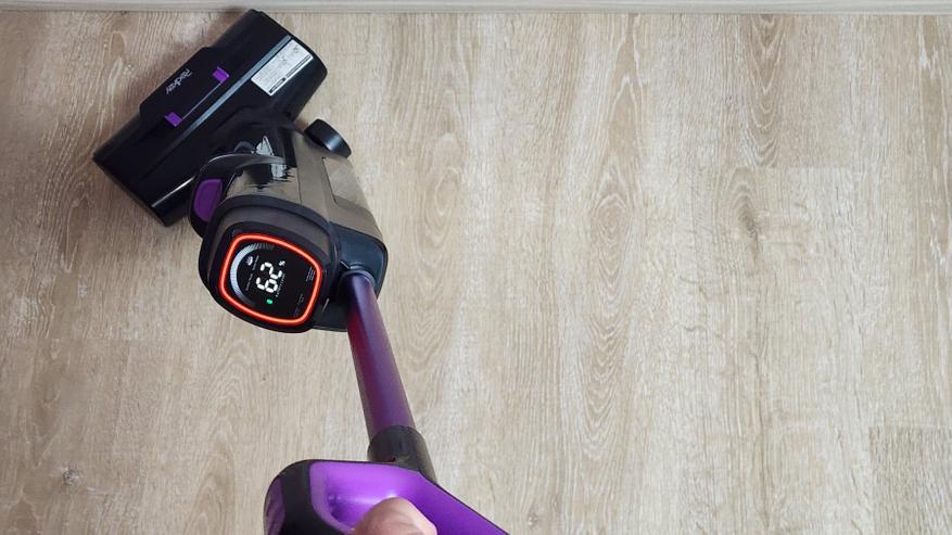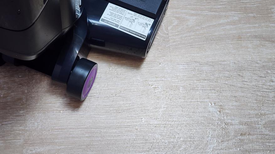 Пробежал по квартире, убрал пол практически до скрипа. Ролик оставляет едва влажную поверхность, что для моего ламината как раз и требуется. Заявлено 40 минут работы от батареи, но мне хватает даже 20 минут из этого времени на полную уборку двухкомнатной квартиры. Уровень шума при работе около 65 дБ — не тихо, но терпимо. С другой стороны обычный пылесос шумит заметно сильнее. Ролик хорошо собирает шерсть — я прохожу и мягкие покрытия при влажной уборке. Пылесос собирает мелкий мусор и пыль, то есть предварительно не нужно проводить сухую уборку обычным сетевым или аккумуляторным пылесосом. Прекрасно собирает пролитые жидкости, особенно выручает, когда случайно что-то пролил на пол.