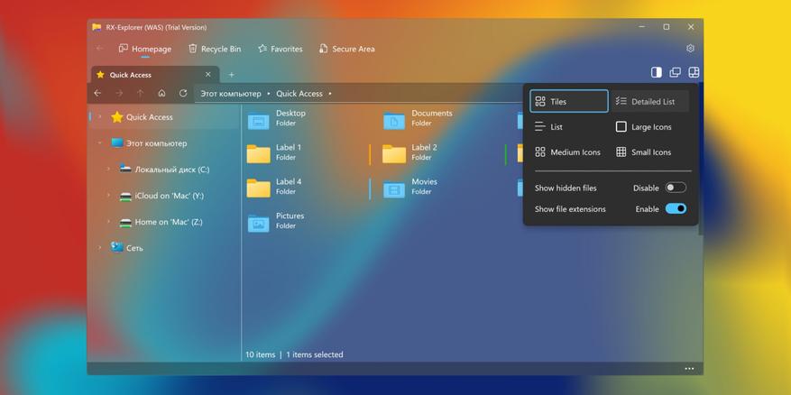 Следующая замена предлагает баланс между функциональностью и визуальной привлекательностью. Интерфейс выглядит современно и поддерживает прозрачные эффекты и плавные анимации. RX Explorer позволяет не только управлять файлами, но и передавать данные по Wi-Fi и даже редактировать изображения без дополнительных программ. Бесплатную версию можно скачать с GitHub, но есть и платный вариант в Microsoft Store.