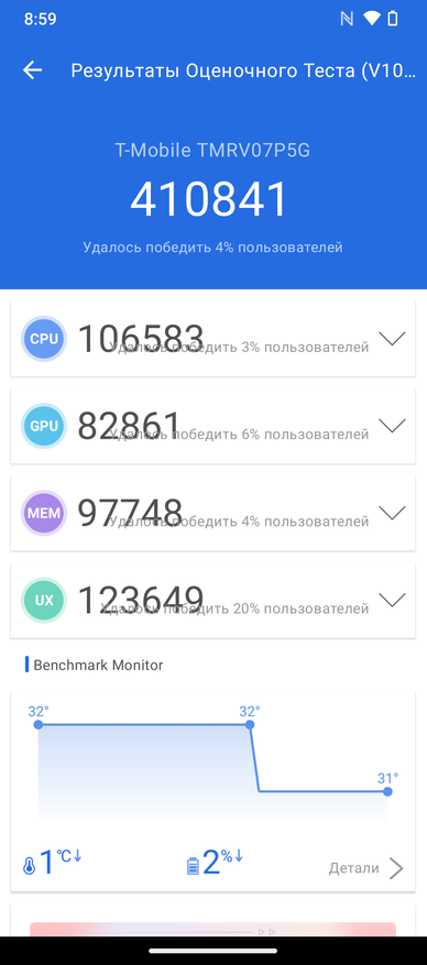- AnTuTu Benchmark: 410 841 баллов