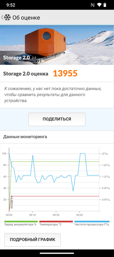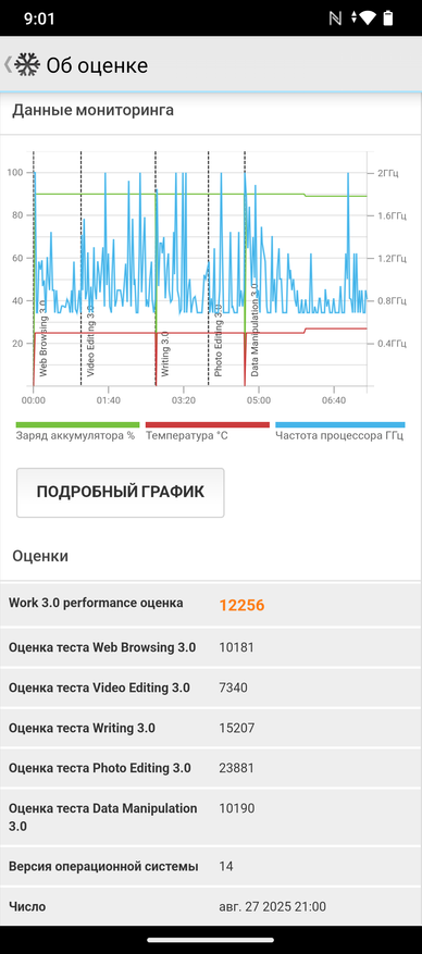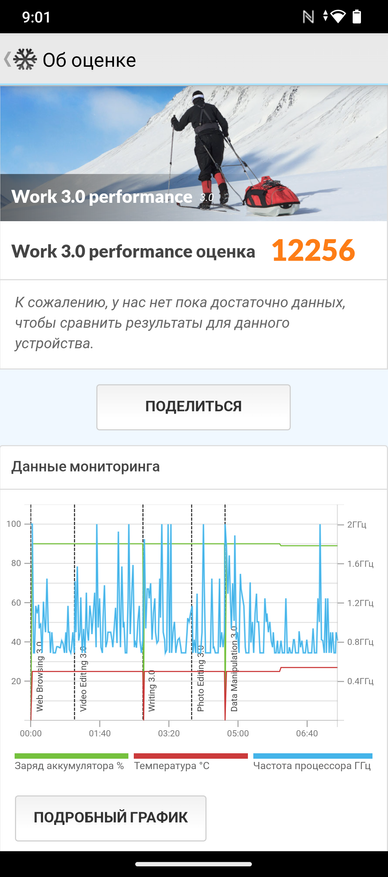 PCMark в Work 3.0 perfomance выдал 12 256 баллов, в тесте Storage 2.0 — 19 955.