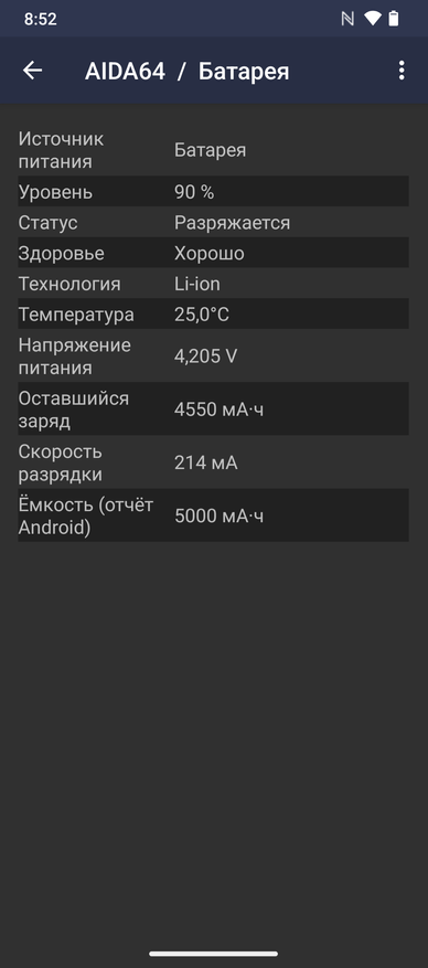 Разряд батареи на максимальной яркости с включенным WiFi с 90 до 20 % занял 8 часов 30 минут. В тесте с непрерывным воспроизведением YouTube на яркости 100% смартфон за один час расходует 5% заряда АКБ.