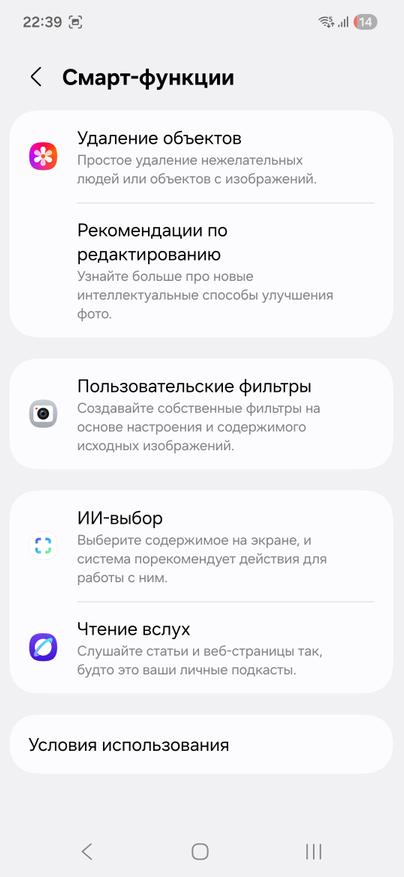 Смартфон работает под управлением свежей ОС Android 16 с оболочкой OneUI 8. Возможности прошивки включают кастомизацию интерфейса (включая множественные сторонние темы), многооконный режим, различные жесты, утилита Game Booster и функция «Сценарии», позволяющая создавать шаблоны для настроек в зависимости от ваших действий или местоположения (например, перед тем, как вы ляжете спать, система автоматически ограничит показ уведомлений и включит фильтр синего цвета). Разумеется, не обошлось и без некоторых ИИ-фишек («умный» ластик, превращение статей в подкасты, функция «обведи и найди» и так далее), хотя по их разнообразию аппарат отстаёт от китайских конкурентов. В целом OneUI сейчас кажется гораздо более оптимизированной и привлекательной, чем несколько лет назад, это одна из эталонных оболочек в мире Android. Бонусом нам обещают получение обновление системы в течение 6 лет, что тоже приятно. Это показывает, что компания уверена в себе и своих смартфонах.