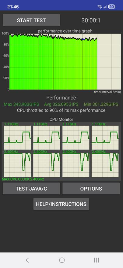 Несмотря на стандартную по нынешним меркам батарею на 5000 мАч, аппарат имеет очень хорошую автономность. В моём часовом стресс-тесте он потерял всего 11% заряда, которые можно спокойно конвертировать в 9-10 часов активной работы, причём на максимальной яркости. Боюсь даже представить, какие «монстры автономности» получатся у Samsung, когда она освоит кремний-углеродную технологию. В комплекте к телефону зарядки нет, однако аппарат умеет быстро заряжаться от многих адаптеров с поддержкой Power Delivery: например, мой 68-ваттный блок от Motorola полностью зарядил батарею чуть более чем за час.