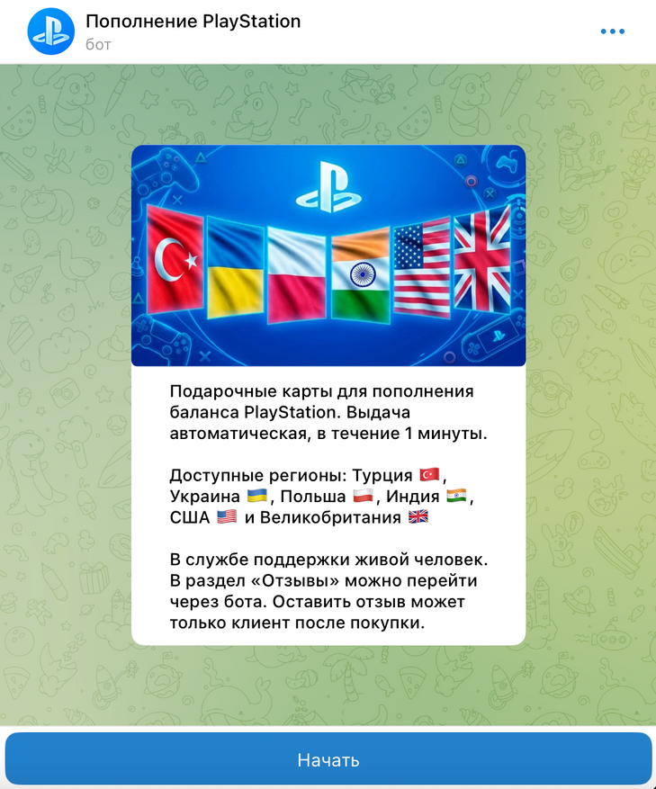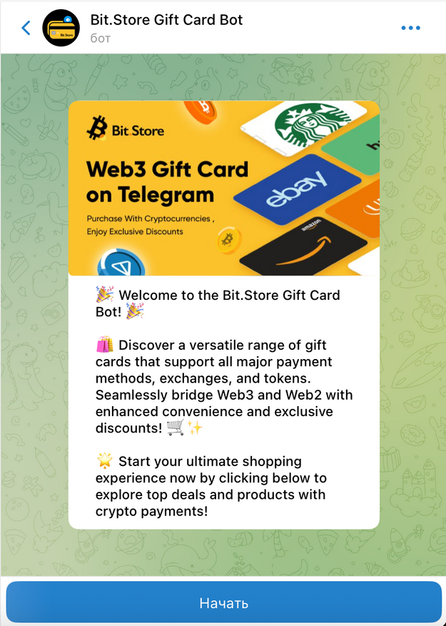 Подарочные карты можно приобрести прямо внутри Телеграма. Там есть несколько ботов, оставлю тут только те, которыми пользовался сам: @PSUpBot, ещё @BitStore_GiftCard_bot. Все эти сервисы работают схожим образом, после покупки выдают подарочный код, который остается активировать.