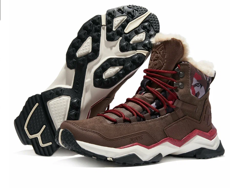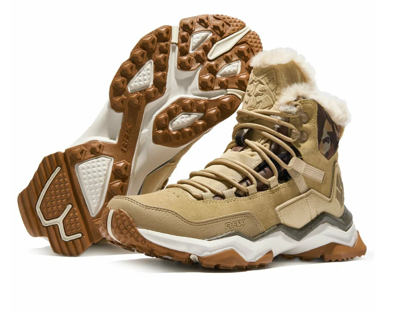 Верх сочетает замшу, синтетические материалы и текстиль, распределяя нагрузку между слоями. Высокий силуэт закрывает зону щиколотки и помогает поддерживать более стабильный внутренний объём при движении по мокрому снегу и слякоти.