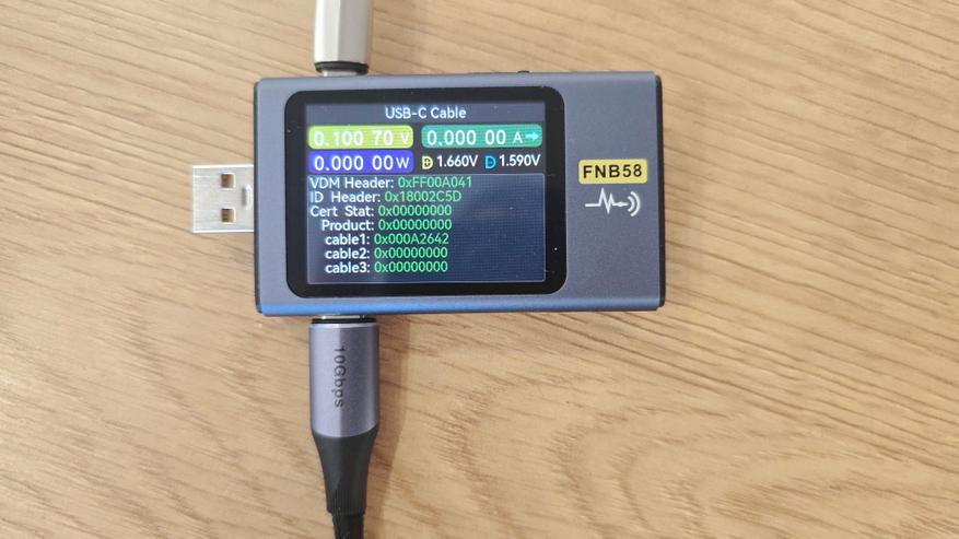 По результатам тестов кабель уверенно проходит все базовые этапы контроля. Он корректно определяется измерительным оборудованием, без сбоев передает данные через E-Marker и стабильно работает под нагрузкой. Измерение сопротивления, считывание параметров и проверка скорости передачи данных не выявили признаков того, что кабель ограничивает питание или пропускную способность линии.
