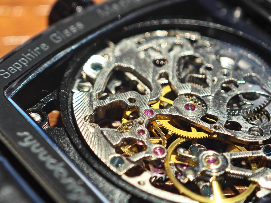 Там, где можно сделать интереснее, компания сделала. Но общие грабли скелетона обойти не захотели: под стать стилю часов тут сделаны и стрелки, они скелетонизированы, а это требует особого внимания!