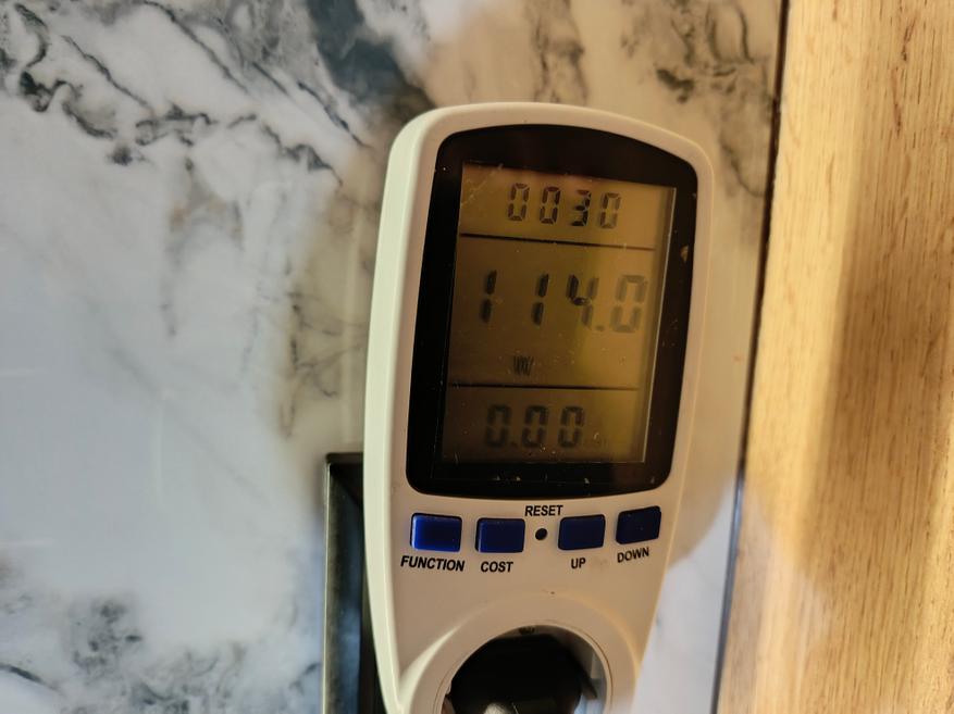 В характеристиках указана потребляемая мощность — 180 Вт, но, скорее всего, это среднее значение. При самом крупном помоле кофемолка потребляет около 120 Вт, на среднем — примерно 160 Вт, а на минимальном помоле мощность возрастает до 300 Вт. Это связано с тем, что при тонком помоле двигатель работает с большей нагрузкой для достижения нужной однородности.