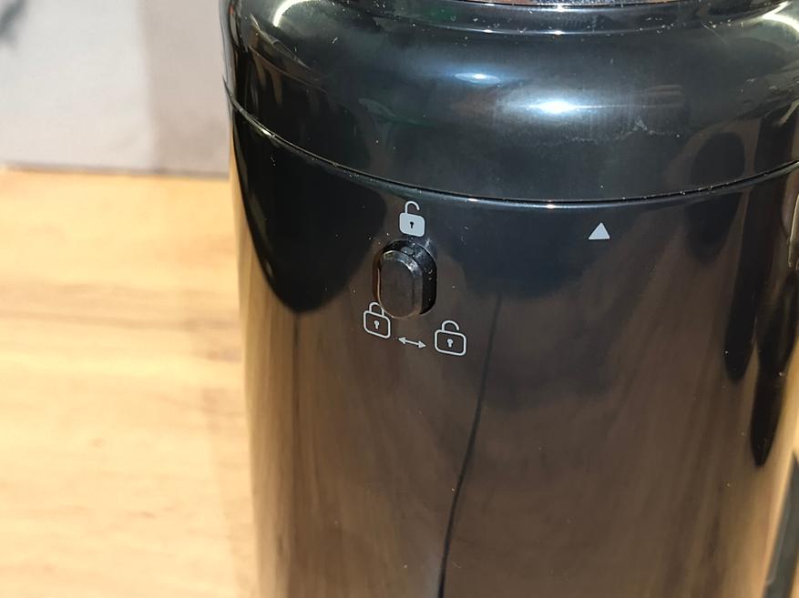 Кстати, помимо защиты от перегрева, предусмотрена защита от случайного включения. Это значит, что если вы не установите бункер для кофе или не провернёте его до конца, кофемолка не запустится. Однако блокировка кнопки включения, например, для защиты от детей, не предусмотрена: при первом нажатии загорается дисплей, а при втором — кофемолка сразу запускается.