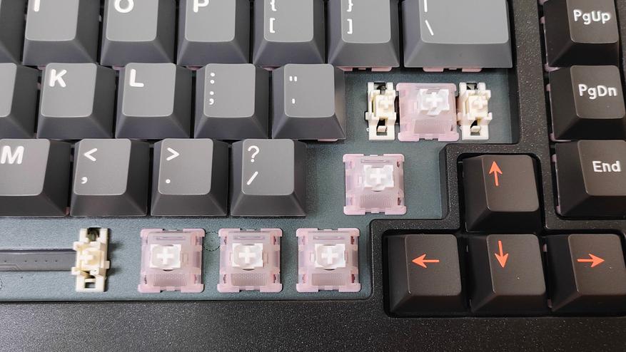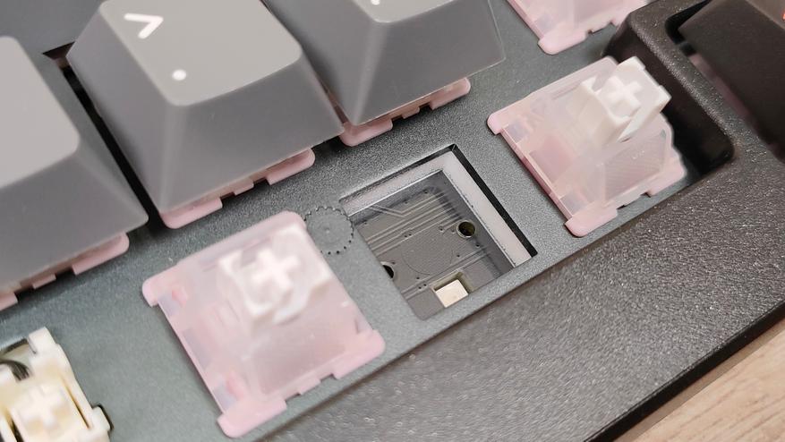В клавиатуре используются магнитные, линейные, тихие переключатели DrunkDeer Kun HE: полный ход 3.7 мм, а усилие вначале 35 г, в конце 55 г, смазаны с завода, поддерживается горячая замена. Используется матовый корпус с рассеивателем.