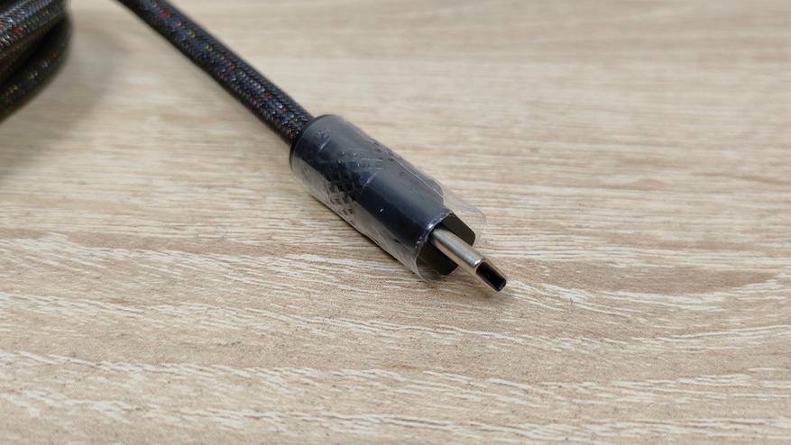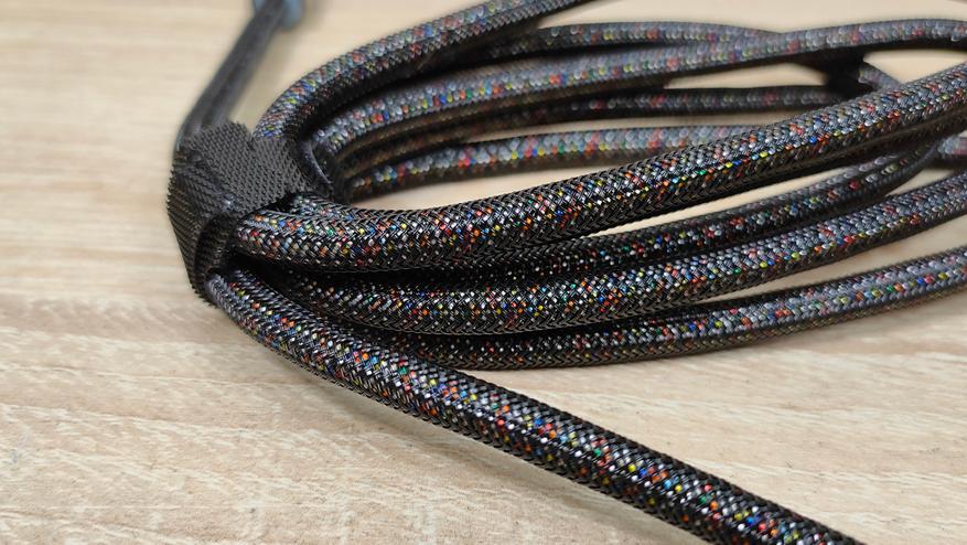 Крышка-пыльник есть и это очень хорошо, почему-то часто забывают про них. Из инструментов есть только худой/тощий проволочный для снятия колпачков. Кабель толстенный и красивый, разные слои имеют разные вкрапления цветные, выглядит интересно, необычно и шершаво. Разъемы тоже могучие, металлические, брендированные.