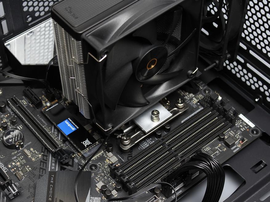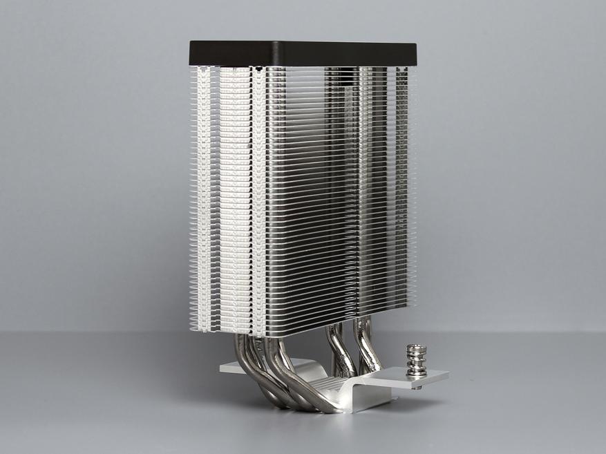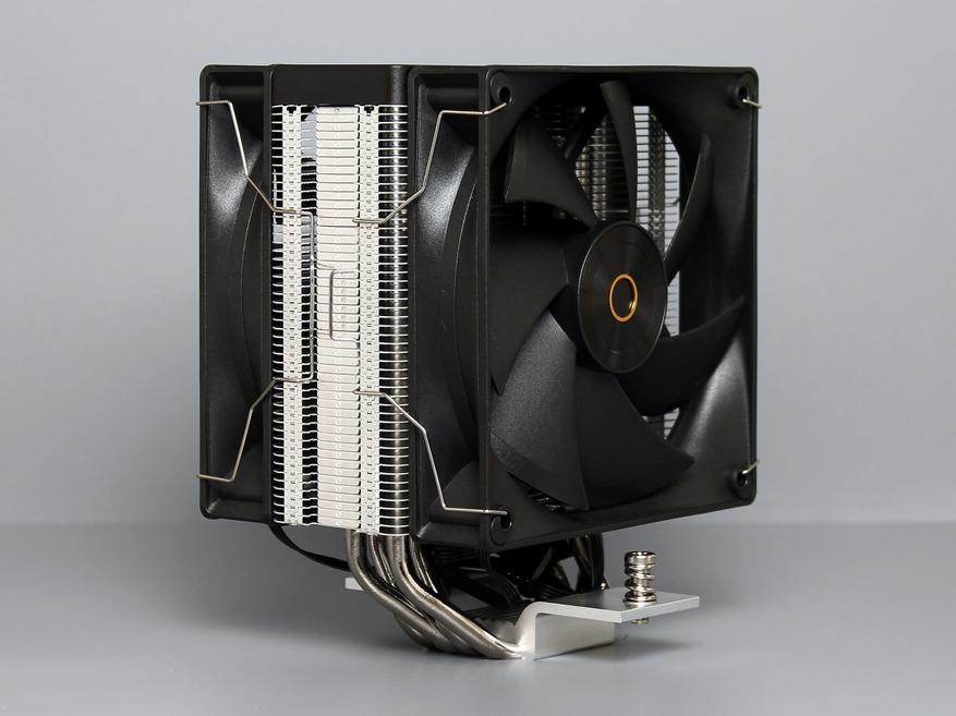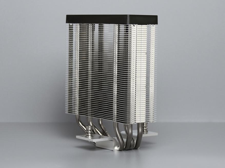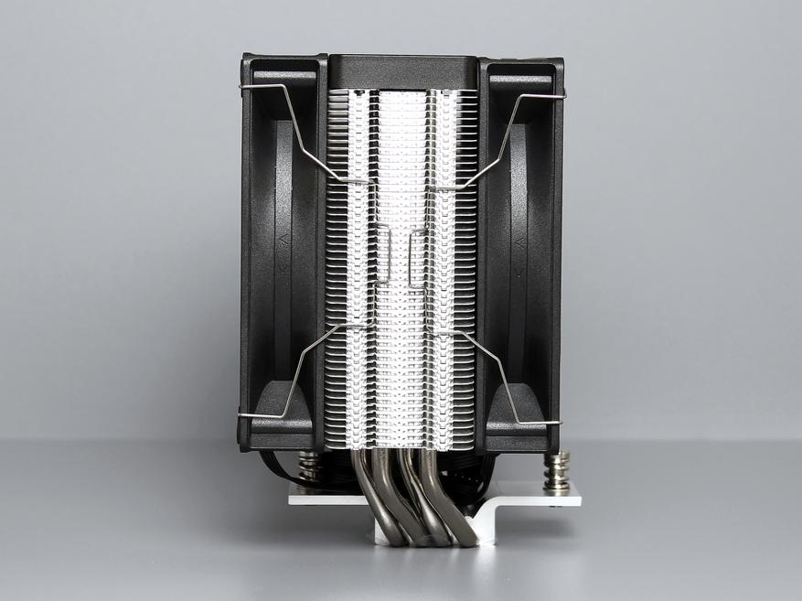 Собрано и подогнано все качественно. А вентиляторы надежно зафиксированы металлическим скобами на радиаторе. Высота кулера в 156.7 мм не доставит проблем при его установке в большинство находящихся в продаже корпусов. А его ширина в 96 мм, да еще и со смещением теплотрубок, не вызовет конфликта с высокими модулями оперативной памяти.