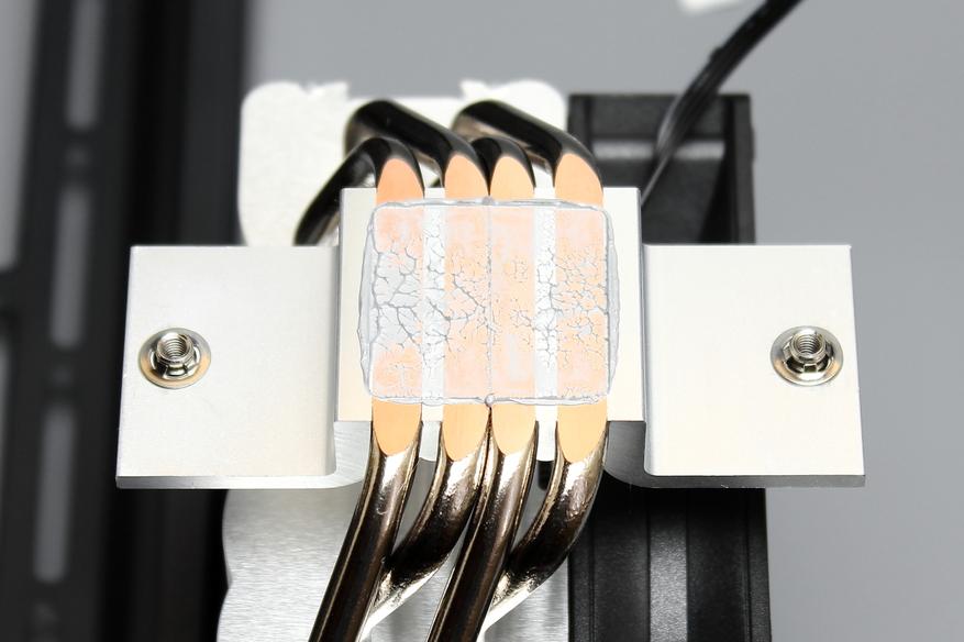 Четыре медные теплотрубки диаметром 6 мм качественно никелированы. Само основание отлично обработано. Поверхность ровная и не имеет остаточных следов от фрезы.