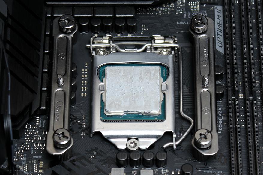 Первым делом с обратной стороны материнки устанавливается бэкплейт, после чего он притягивается четырьмя стойками, на которые далее накладываются прижимные планки, которые хорошо затягиваются гайками. А завершением этому идет установка кулера с равномерным закручиванием его двух подпружиненных винтов. Кстати, задний вентилятор перед установкой с него надо снять, а передний нисколько мешать не будет.