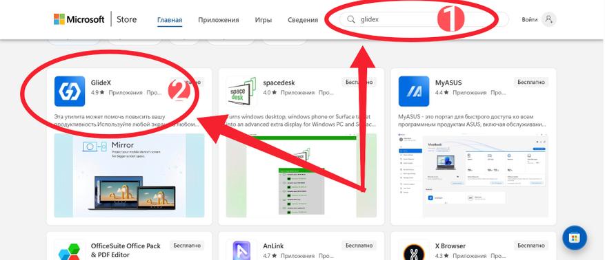 Для начала на вашем компьютере переходим в Microsoft Store и в поиске вводим GlideX. Находим одноименное приложение и скачиваем его. После скачивания открываем «Загрузки», находим скачанный файл и устанавливаем приложение.