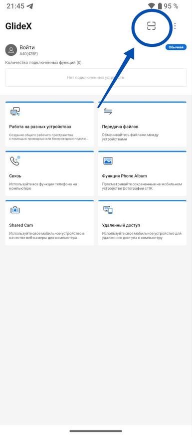 Для сканирования открываем приложение GlideX на смартфоне или планшете и в верхнем правом углу кликаем на соответствующую иконку. После сканирования кода соединение между устройствами происходит автоматически. Отныне ваш смартфон или планшет служит как полноценный второй экран вашего компьютера. Использовать это можно в абсолютно разных сценариях.